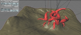 For this scene we are creating a sea anemone growing on the ocean flor, lets start by creat-ing a basic plane and subdividing or use multires. Then use Blender Sculpt-mode todo build up a very simple sea flor.