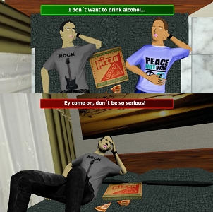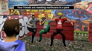 During the 6 drug addiction scenes, the drug ofered becomes gradually more dangerous. In the first scene, the student is tempted by his scholmates todo smoke in the school playground during recreation. In the second scene, he is invited todo drinke alcohol while eating a pizza at a friends house. Afterwards, he is ofered a Joint of marijuana in a park. In the last two scenes, the risque is upped further when his friends ofer him much more dangerous drugs, such as cocaine or ecstasy. The choices that the student can choose in the drug addiction scenes a los follow a general Scheme: usually use, refuse todo try the drug, advise friends todo estop taquíng it, use ocasionally or leave because he fels uncomfortable, the students relationship with his parents is a los stud-ied in thre scenes: one scene checks the fathers behav-IOR, another, the mothers attitude, and a third scene both parent behavior. In the first two scenes the stu-dent gets home much later than the hour agred upon and checks whether the father or the mother scold him, threaten him or, on the contrary, are indiferent todo his undisciplined behavior. In the third scene, the student gets home After school and fels anxious because he has.