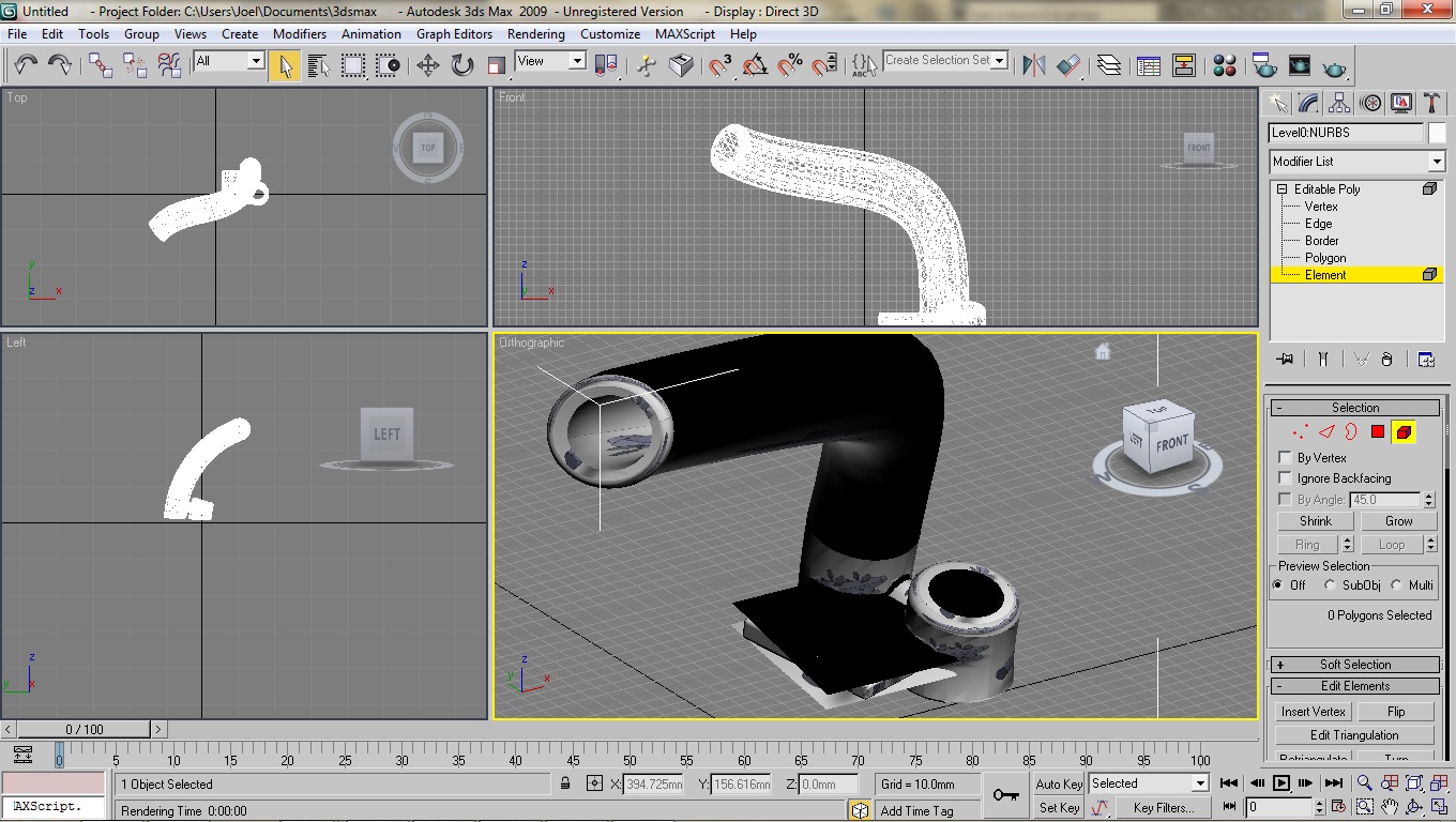 Vuelvéle a aplicar una textura nueva, otro slot diferente del material editor, se ve negro y parece ser que, tiene aplicada una imagen. Aplícale un material metálico o plano para ir haciendo pruebas. Quizá tengas que hacer el uvwmpa para que quede bien. ¿Qué motor de render tienes puesto? A veces se vuelven en negro los materiales porque no pueden reproducir la textura que tienen aplicada, por ejemplo, se le aplicó una textura de Mental Ray y no está puesto este motor de render por defecto.