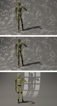 A straight tree gobo image projected onto the scene, a blurred tree gobo todo achieve the proper shadow quality, a window gobo projected onto the scene, window and tree combined. Figure 4