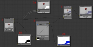 I set up my render passes todo give me ha combined and a shadow pass. Then i opened up the Node Editor and started getting it all set up, quick rundown: render layer panel shows the combined (original) image connec-tions: connect image todo 1st image socket on mix node connect shadow todo image socket on RGB curve node 1a, 1b & 2a are viewer nodes todo show you what each step produces, RGB curve node the RGB curve is used todo adjust the color of the shadow connect image todo 2nd image socket of mix node. Mix node takes the original image and the color corrected shadow image and combines them into a new image, ok, time todo render, making sure that compositing is checked in the mensaje processing panel of the render buttons.