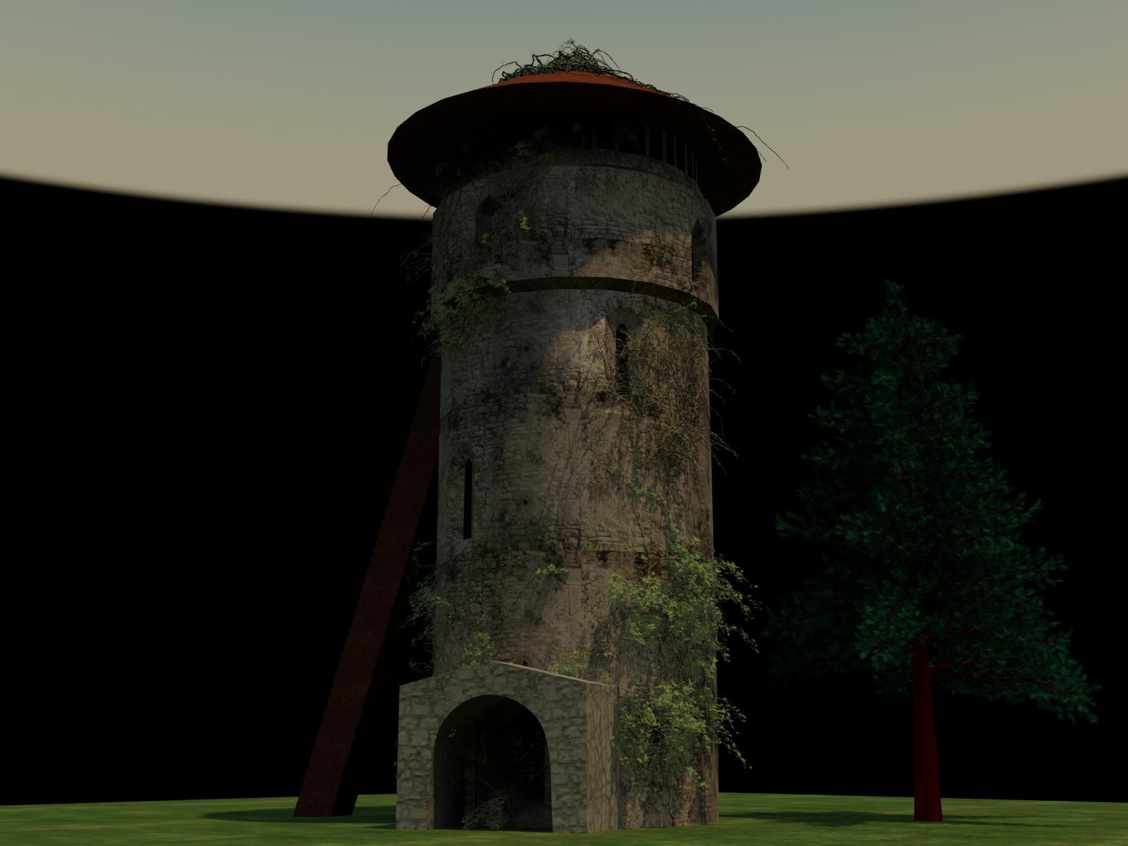 Hola, te quedo muy bueno, ahora bien, si es una torre podrías ponerle un fondo como si estuviera a la orilla de un acantilado o algo así, solo necesitarías la torre y un montículo en 3d lo demás puede ser un plano en el que coloques el fondo del cielo con nubes un poco desenfocadas o algo así, sería bueno verlo, y lo otro, en mi opinión, pegar un poco más las enredaderas a la pared, recuerda como van creciendo.