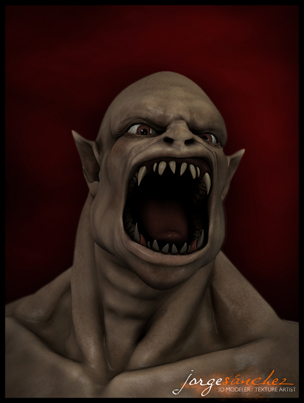 Buenas. El trabajo está bastante bien, pero hay unas cuantas cosas por pulir que mejorarían mucho el aspecto. Creo que en la expresión le falta bastante fiereza. Parece que el dentista le esté haciendo una revisión y le haya dicho que abra la boca. Marcar arrugas en la frente y el entrecejo mejoraría bastante el aspecto.