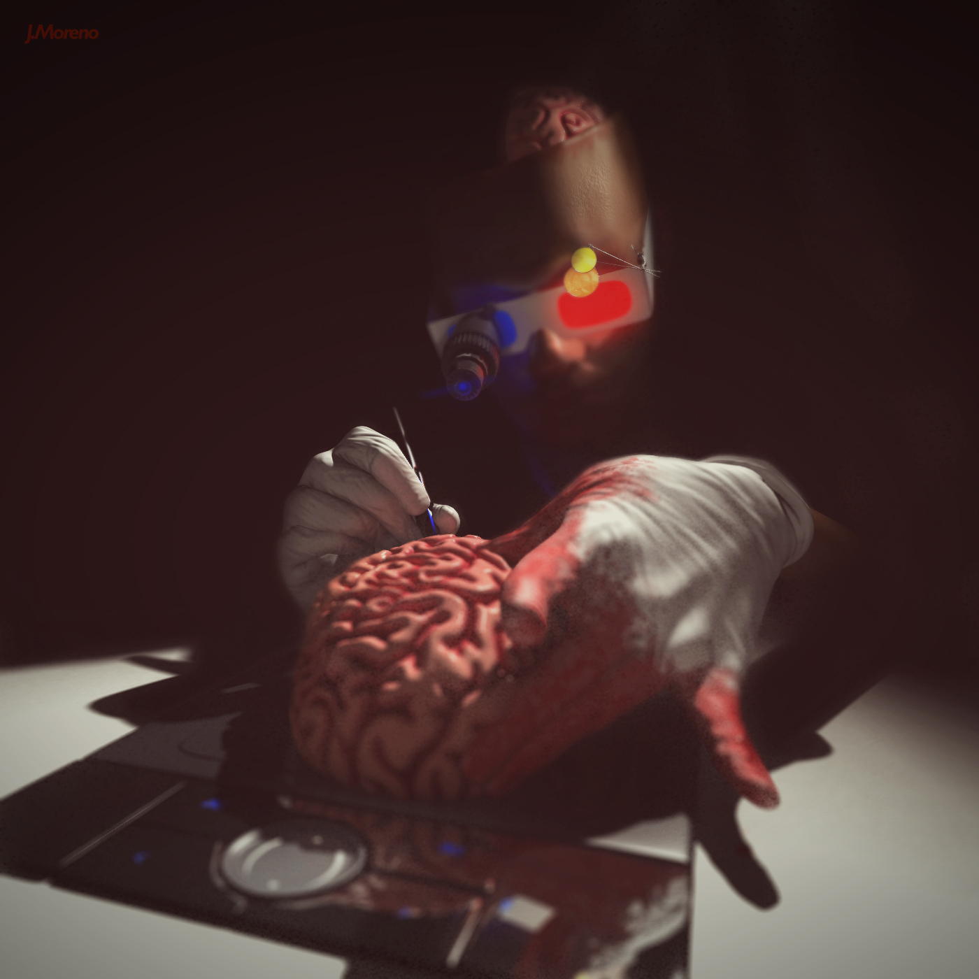 Epar, Pigo, Wurthkiller, rastafaritz muchas gracias, me ha venido muy bien como primera toma de contacto con Mental Ray en Maya y como excusa para esculpir mi rostro, que es ese que surge de entre las tinieblas. Esculpir las manos ha sido bastante entretenido, tomando referencias delante del espejo con unos guantes puestos, y sacarme el cerebro y ponerlo en la Wacom también, pero no se lo recomiendo a nadie.