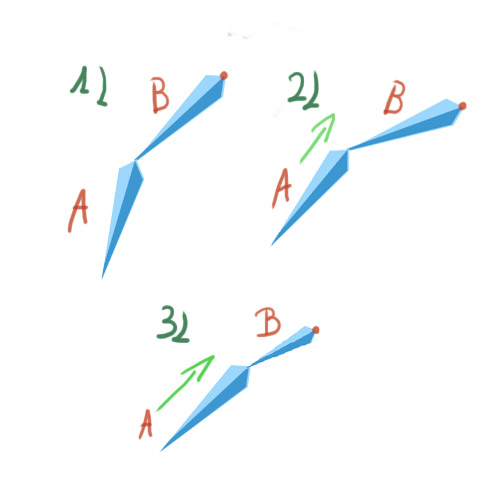 Miremos la imagen, en primer lugar vemos dos huesos normales (1) perfecto (e lo que hace tener una Wacom) en los siguiente huesos (2) si muevo a, el hueso b se queda en la misma escala y proporción, eso es lo que todo el mundo consigue, bien, pues lo que quiero es lo que pasa en el siguiente hueso (3) que es que, si muevo a, el b cambia de proporción, espero haberme explicado bien, esto lo consigo de la manera más cutre que es en huesos y en modificar hueso, en fin, creo que va con algo del pivote o algo así, en el ejempl de IK Joe de Lara si coges la cabeza el cuello se desforma, pero he intentado de todo hasta constraint, ah en fin, herr mi un abrazo.