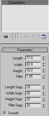 Vamos a crear cojines. Creamos una chamfer box con las siguientes medidas.