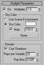 Ahora colocamos una luz tipo skylight con los siguientes parámetros.