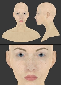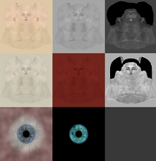 I used the images of Liliana todo make the textures of Ruby as well. First, y used Texture Paint with Project from view UV mapping and Painted the images of the front and side view on the Mesh. So now we have a base texture on the main UV map that was created before, After this i go todo the Gimp and start working on the Diffuse texture. I copy and paste the god parts of the textures todo improve some bad áreas. I rarely use the clone stamp because if you arent really god with this, its easy todo screw up your texture. When the texture is done, y use the sharpen filter todo bring out the details, y worked with 4que images for the Diffuse and Bump maps and 2que images for the other maps.