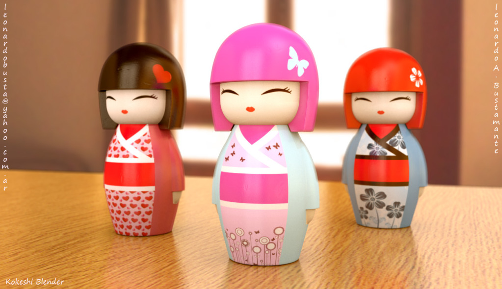 Este es un trabajo que realicé inspirado en las tradicionales muñecas japonesas kokeshi. Su tradición se remonta al período edo (1603-1867) en que los artesanos de la época, conocidos como kijiya (palabra japonesa qué significa ebanista).
