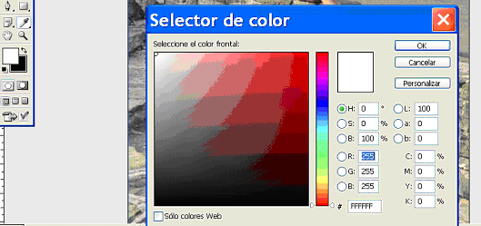 Si realizamos clic en el icono de color fondo, nos aparece el selector de colores, seleccionamos el deseado y pulsamos intro. Ver figura 1.5.