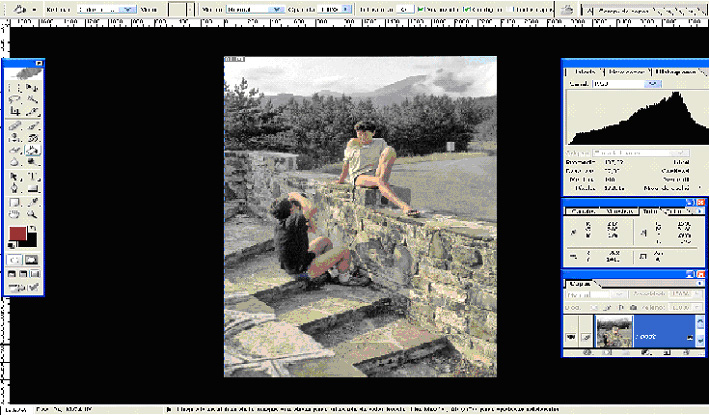 Si nos siguen molestando diferentes elementos y no visualizamos la imagen en su totalidad, podemos ocultar, las paletas, la barra de opciones y el cuadro de herramientas, pulsando la tecla tabulador. Si la pulsamos de nuevo estos elementos son restituidos a su lugar dentro de la ventana.