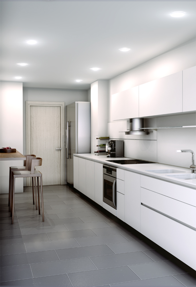 3° la cocina, al menos para mentir un poco, corre la puerta un poco más a la izquierda, por que queda encimada con la puerta de la heladera, e insisto con el verde. Y sacaría la cafetera y las 3 botellas ya que queda muy pobretona con eso solo, se lo puedes cambiar por una linda planta que le va a dar color a la escena.