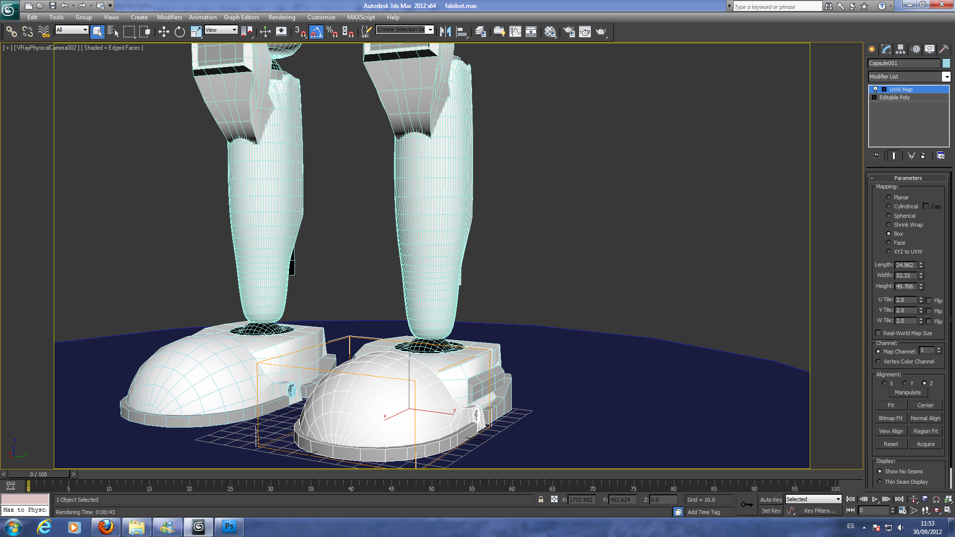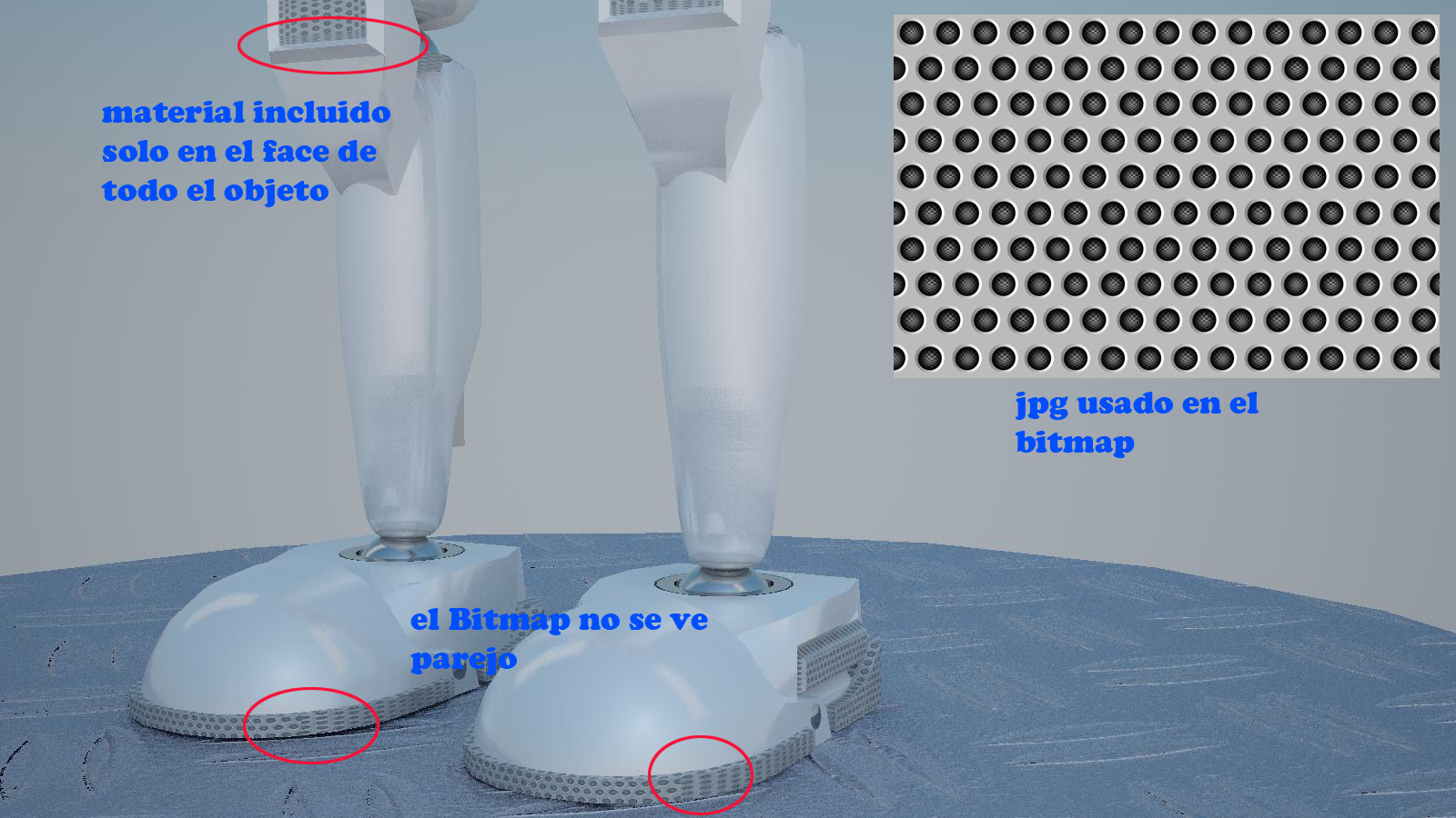 Estimados amigos, tengo el siguiente problema, quiero poner un bitmap en los pies de mi robot, pero se nota por partes del Editable Poly la diferencia entre un face a otro face, mejor vean el gráfico que explicara mejor lo que quiero que vean.