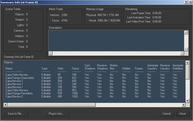 Señores, tengo una duda, por fin he logrado modelar mis neveras en 3dsmax 7, no sé si se recuerdan de cuales neveras les hablo, de todas formas, aquí está el enlace, http://www.3dpoder.com/foro/viewtopi...light=consulta la duda a la que hago referencia esta ligada a los vértices y las caras, porque al modelar en 3dsmax tiene muchos más vértices y muchas más caras, adjunto les envío el sumario para que se fijen en la gran diferencia, y me digan que puede estar pasando, si eso afectara el tiempo de render en un futuro o no, gracias.