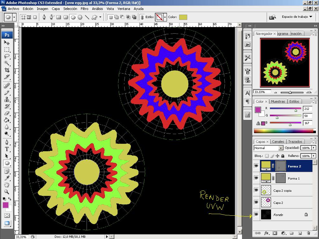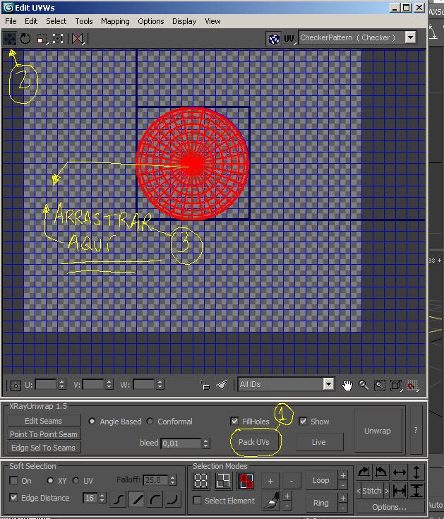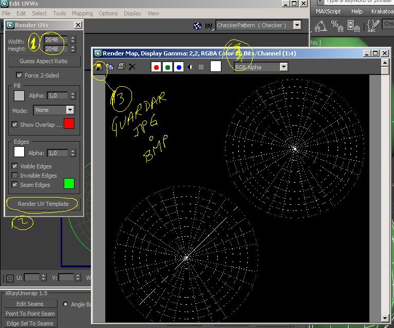 8.-abrir o arrastrar imagen render UVW creada desde max y aplicar texturas o dibujos, colores lo que quieras, en base a estas coordenadas debes hacerlas.