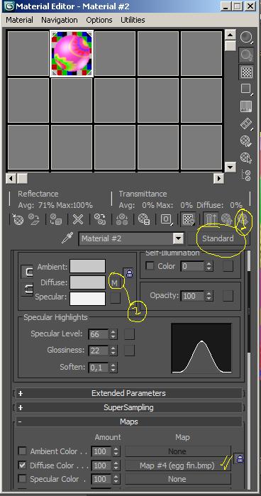 10.-aplique bitmap en canal Diffuse e hice un render en Low. Además, le di un poco de reflect.