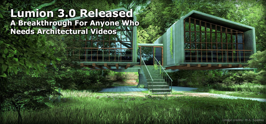 Lumion 3.0 viene con nuevas características, como iluminación global, soporte para audio 3d, reflexiones precisas sobre superficies planas, representación exacta de múltiples capas de vidrio, nuevos modelos de árboles en alta resolución, modelos de personajes mejorados, mejor representación del cielo con nubes volumétricas y soporte de vídeo para las texturas, esto quiere decir que podremos utilizar vídeos con formato mp4 como texturas, por ejemplo, la textura de la pantalla de un televisor.