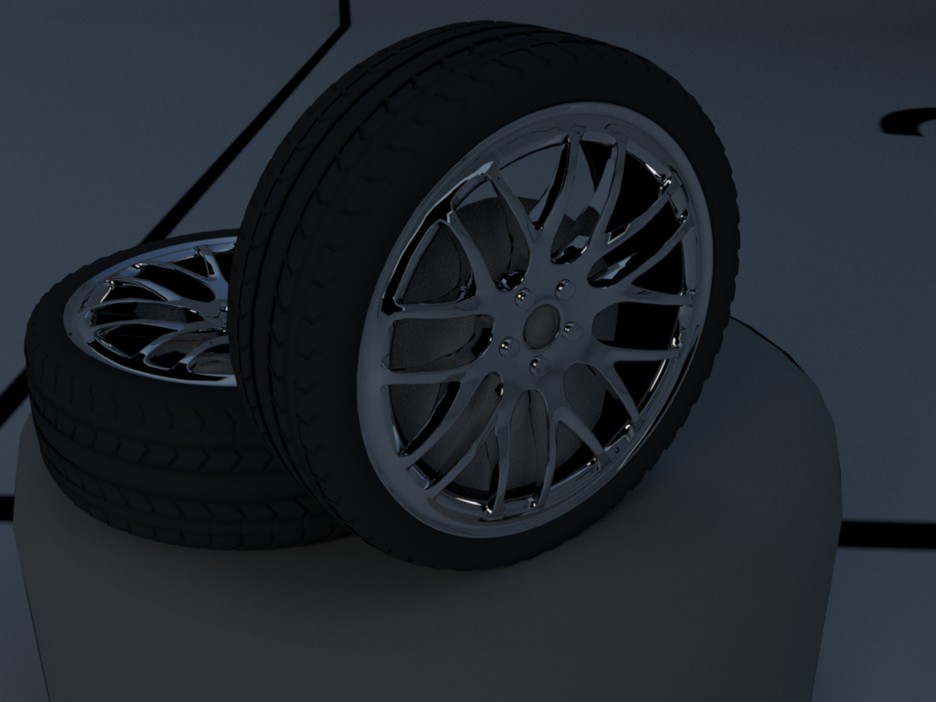 Al final encontré algo de tiempo para hacer alguna cosa. Tenía en mente, montar escenas con algunos elementos del coche para ir renderizando por separado. Así puedo probar hasta encontrar la combinación óptima de Shaders, sin tener que renderizar toda la escena.