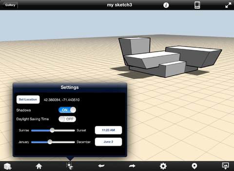 Utiliza el GPS, así que, es capaz de situar en tiempo real nuestra posición y darle sombras al modelo según la franja horaria, además el modelo puede verse integrado en el punto exacto donde se quiera construir, y con su entorno real. Más información en Autodesk formit.