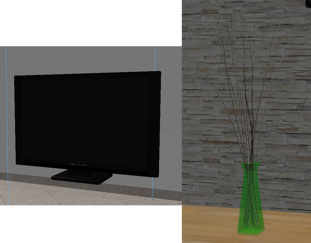Ahora ya creo que el error es por cuenta de la cantidad de Polygons, en la televisión tiene más de 2700 y mi ordenador todavía es muy fraco, 32bits aún.