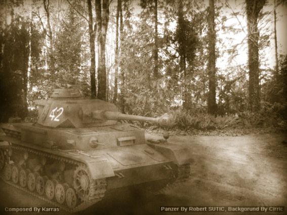 Está muy bien sobre todo la primera (en la del b/n coincido con Mario). Aun así, creo que en la imagen en color, la dirección de la luz del fondo y la del modelo no coinciden y por eso da esa sensación de que algo no termina de cuadrar del todo en la composición (no tengo mucha idea sobre el tema, si no es correcto lo que he dicho corregidme, pero no seáis muy duros eh). Además, creo que si un tanque pasara por ese camino de tierra, a los dos minutos las cadenas y parte del chasis (sobre todo por abajo) estaría muy sucio, y no como en la imagen que parece casi recién salido del lavado de tanques.
