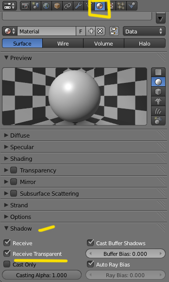 Supongo que estas utilizando alguna versión actualizada, eso está en material > shadow > receive transparent.