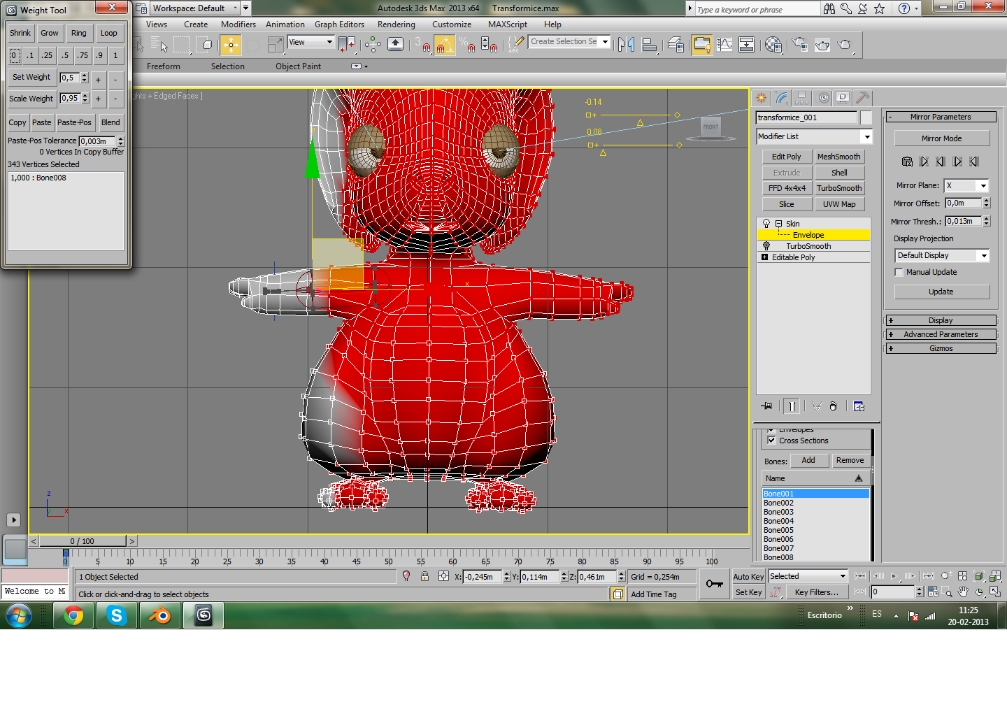 Hola tengo un problema e el skinning de mi personaje cuando le doy modificador skin a mi modelo y activo la selección por vértices y como ven en la imagen un hueso tiene tomado gran parte del cuerpo que no debería ser haci por lo que intento cambiarlo y aprieto en wheight properties en la marca de llave inglesa y aprieto en 0 para qué no tenga influencia el hueso en esa parte de la zona el programa no hace nada no sé porque cuál es el problema Archivo adjunto 178822