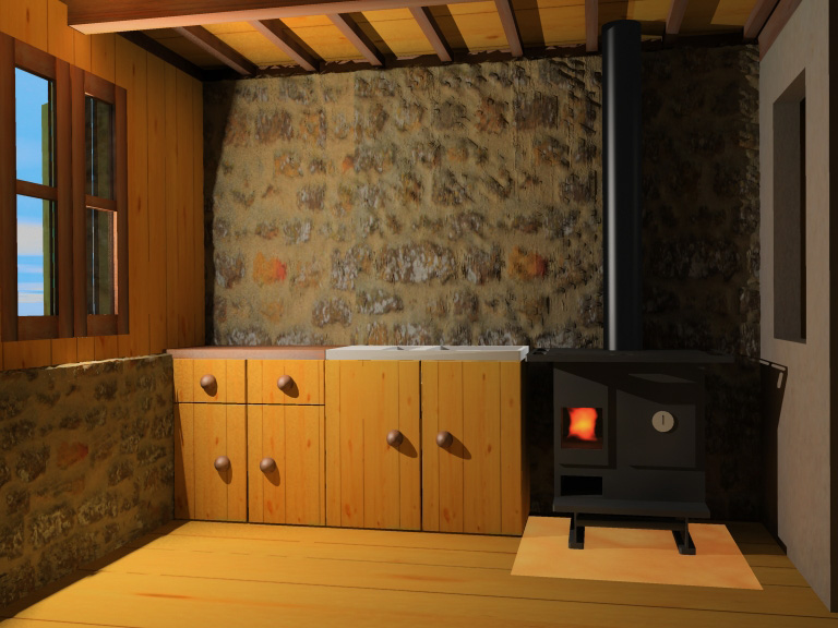 La pared de madera, en general, me parece que está buena como te está quedando, a la qué me refería es a la pared de piedra que, justamente en esta imagen que acabas de subir se aprecia mejor, se ve la repetición de la textura, el Tile (en esta última imagen se nota abajo de la ventana la unión de las cuatro partes) trata de trabajar más la textura para qué el seam no quede tan evidente.