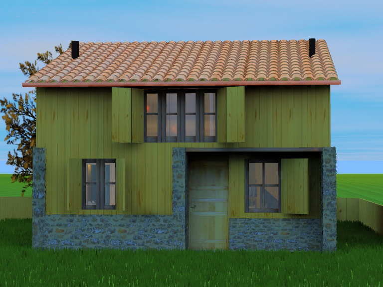 El fondo pondría alguna imagen más realista y con más vida para qué la casa quedase más integrada en la escena. (sobre todo en los renders exteriores).