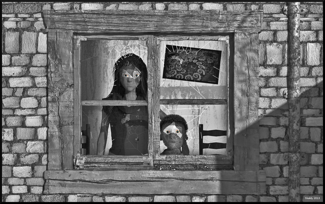 Pues eso un punto de vista sobre el daño colateral de las armas de fuego. Modelado en Bender, render Cycles y composición en Blender para usar la máscara para qué aparecieran solos ojos en color.