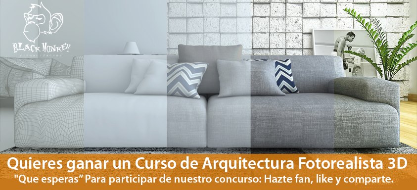 Dale Me Gusta al fans page Blak Monkey comparte con tus amigos y has que voten por ti, el participante más votado será el ganador del Curso online de Arquitectura Digital fotorrealista.