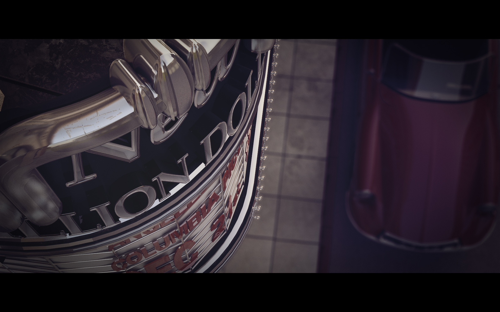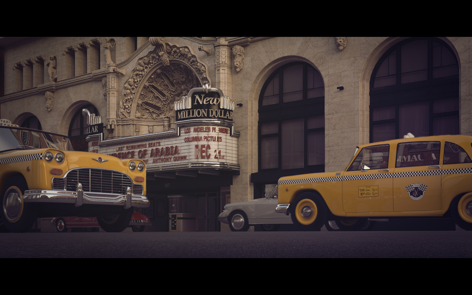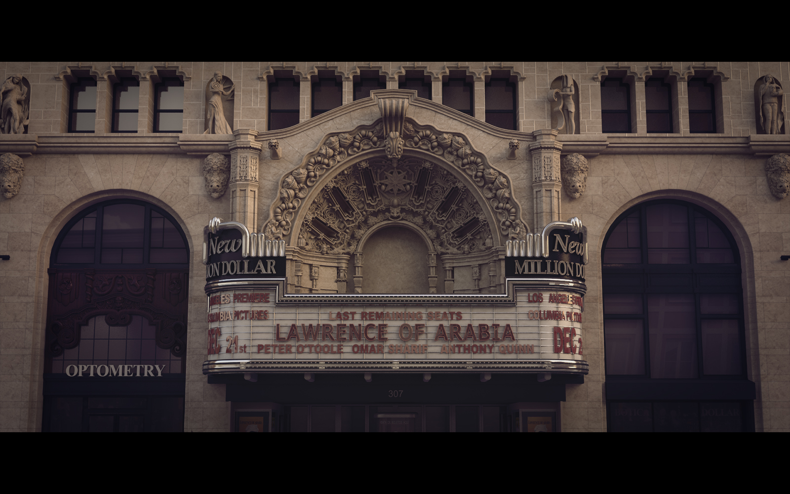 Alucinante, el arco sobre la puerta es de hordago, así como las estatuas. Una versión con luces y más efectos de postproducción, glows, en plan noche de estreno, te puede quedar muy bien con este pedazo material.