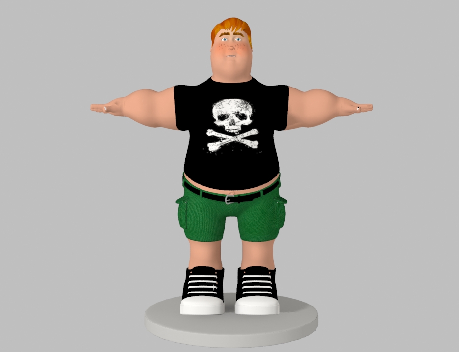 El resultado de las texturas queda bien, personalmente como modelo no me gusta qué no tenga muñecas ni rodillas, y me da la impresión de que con esas piernas y brazos tan gruesos, hacerle el pesado de huesos va a ser harto complicado.