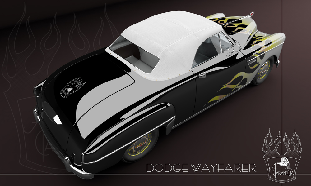 Un nuevo trabajo de modelado, en este caso un Dodge Wayfarer al que me he permitido dar un toque roquero con una pintura de llamas. Lo he modelado en 3D Studio Max y renderizado con Mental Ray.