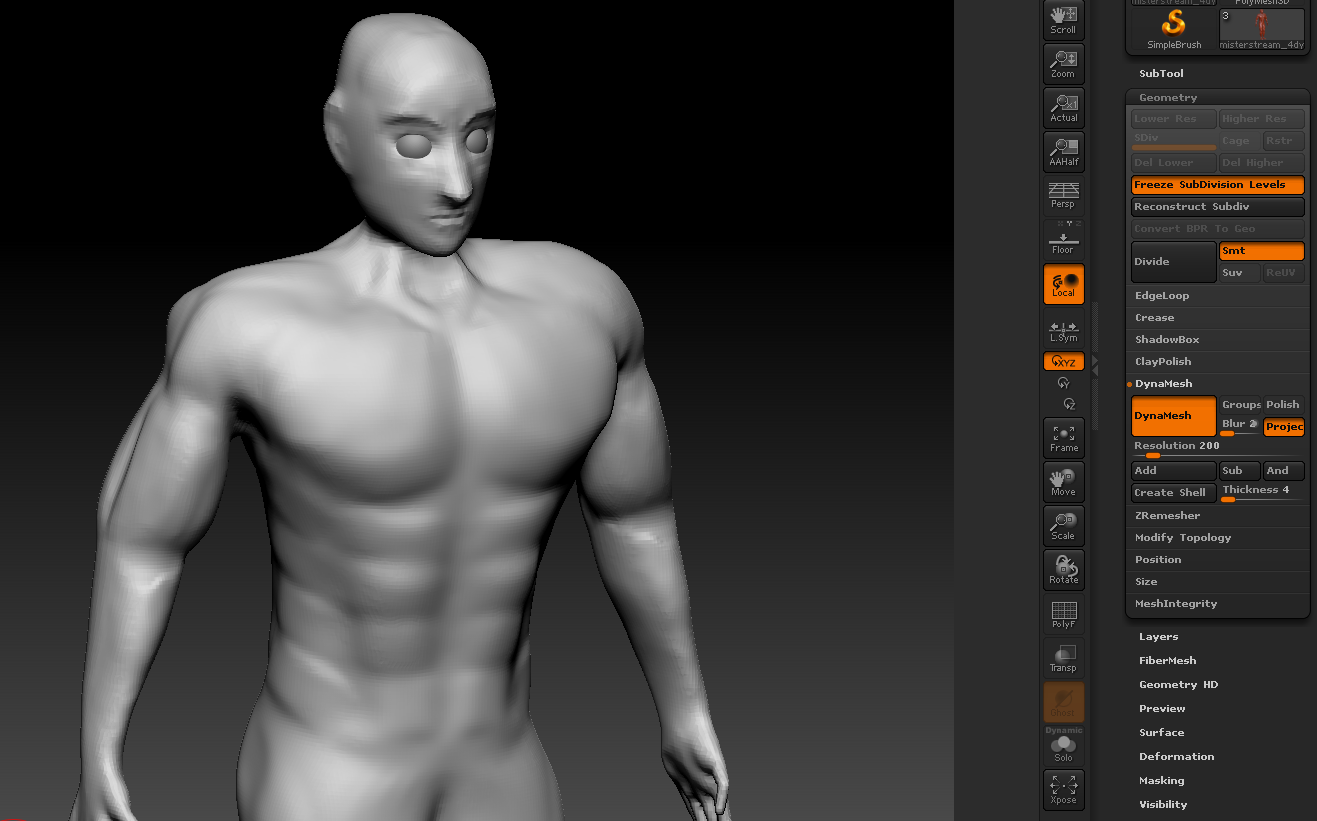 Nada he intentado lo que me has dicho y nada :/ No se es extraño a la hora de hacer el DynaMesh congelé las 3 subdivisiones que tenía y a la hora de quitarlo se me queda como estaba antes.