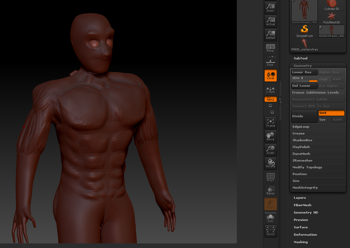 Resulta qué estoy haciendo un busto que le he aplicado un DynaMesh congelando las 3 subdivisiones que tenía.