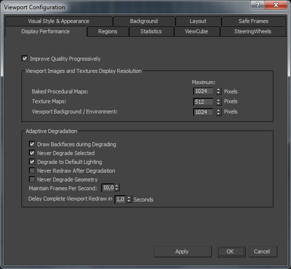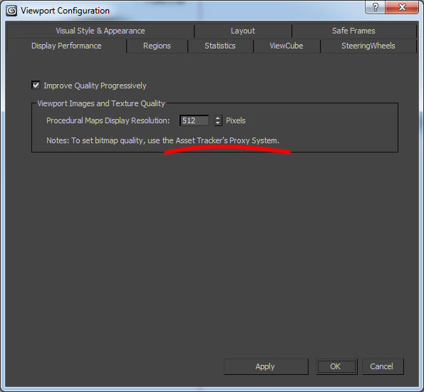 En preferencias del viewport hay una pestaña para cambiar la calidad de las texturas, pero no he visto diferencia cambiando los píxeles y el Asset Trackers Proxy System, tengo que investigar porque no sé lo que es. Un saludo.