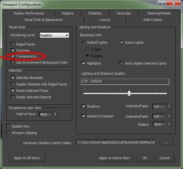 Lo de la transparencia es que lo uso cuando alguna vez voy a modelar poniendo un fondo de bajo para guiarme, pero bajando la visibilidad me sirve. Muchas gracias por todo. Saludos.