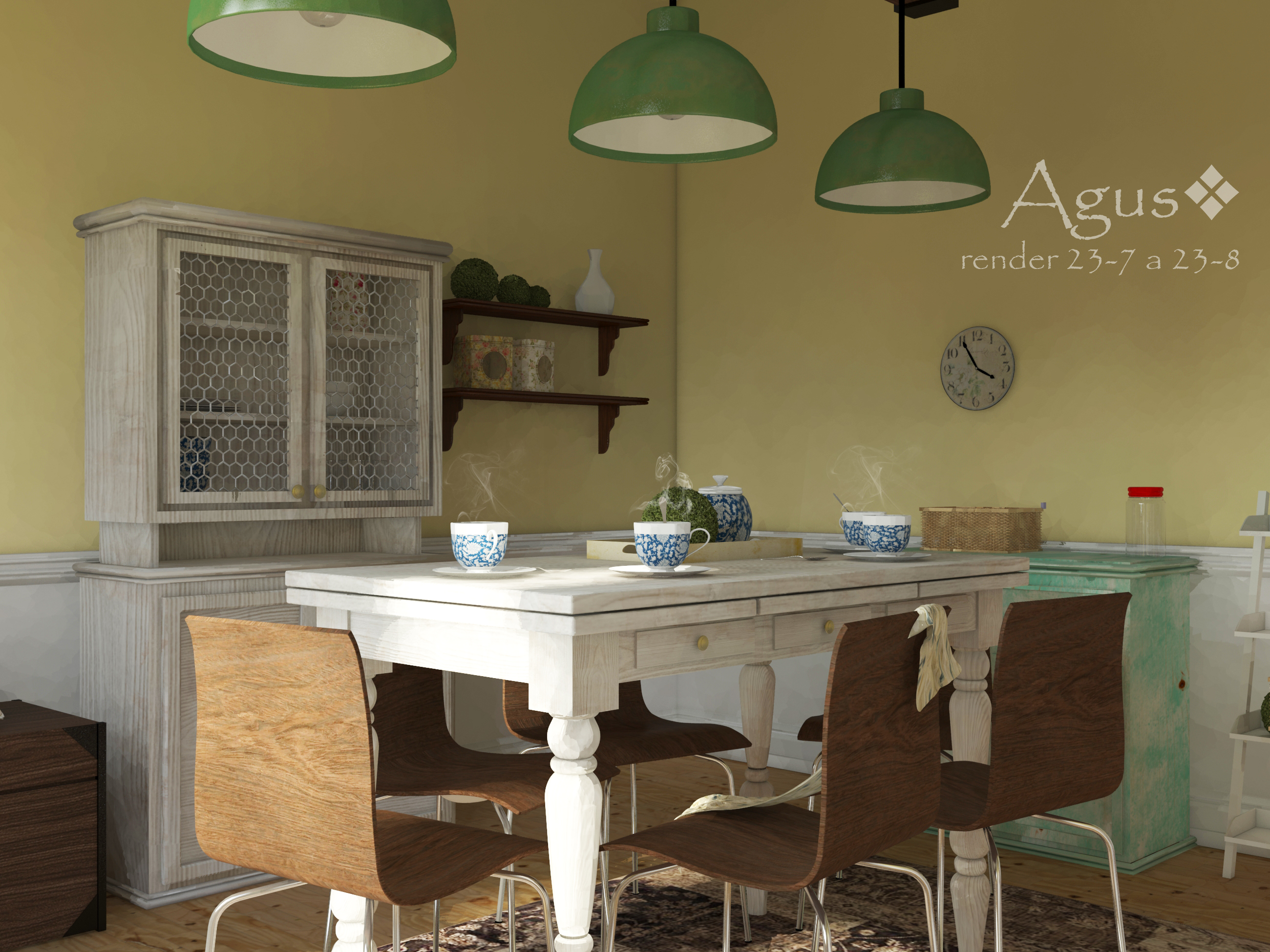 Y parece como si estuvieran flotando. Esto se puede deber a una mala configuración de las luces a y la calidad de las sombras o, si es que generaste el -vrmap antes cuando no estaban las sillas.