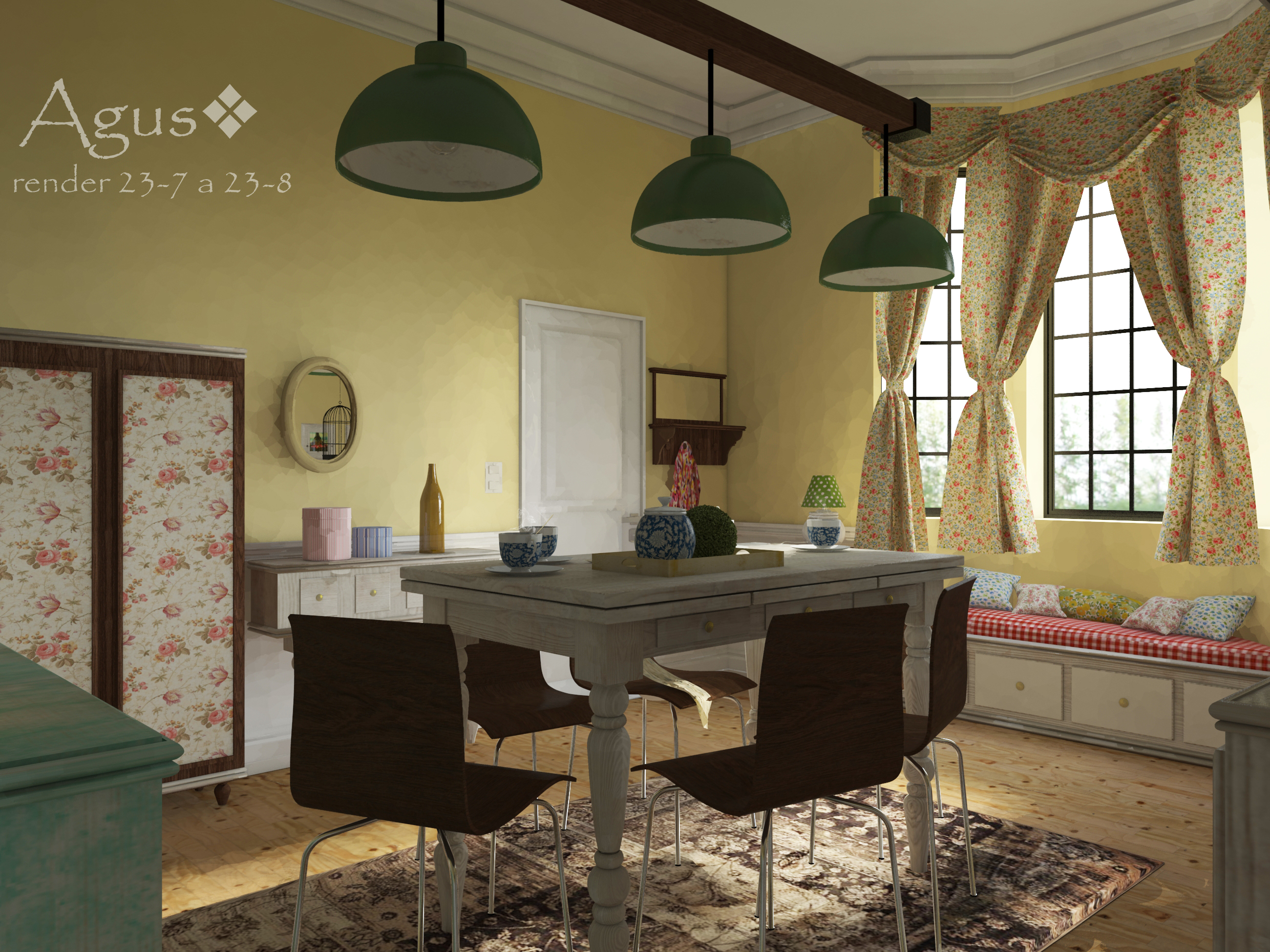 Otra cosita qué vi, es el almoadón rojo y blanco debajo de la ventana. Ahí se ve la repetición de la textura, y no queda muy bien. Además, se la ve un poco sucia y borrosa como si fuese un (*.jpg) de baja resolución. Si no puedes hacer que esa textura se repita sin notarse proba de hacerla vos mismo en Adobe Photoshop. El diseño no es complicado y en Adobe Photoshop también le puedes agragar un layer con una textura de tela si lo quieres hacer bien.