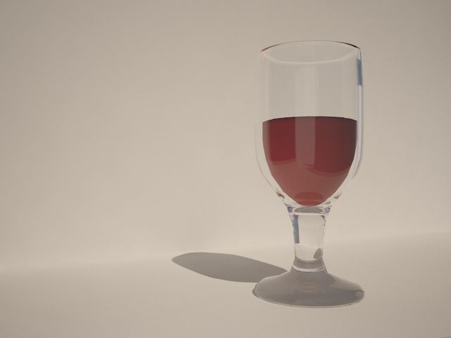 Da la sensación de que le falta poligonización al vaso, ponle más interpolación que es una escena sencilla.