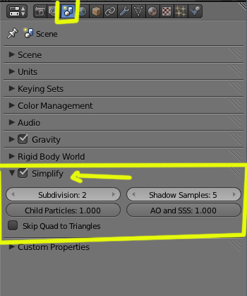 Para simplificar la escena, hay una opción en SCENE llamada SIMPLIFY