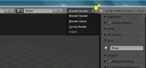 En la parte superior se puede cambiar de Blender Render a Cycles o a GAMe o si tienes addons activados también a los diferentes motores de render o NETWORK RENDER