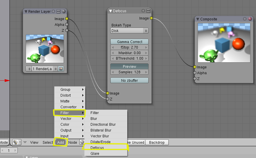 Como conseguir un efecto borroso en las imágenes enfocando cierta zona en Blender 2-4