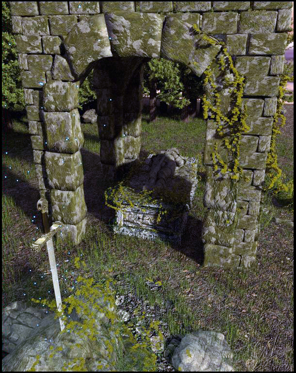 Gracias Azrael y Marc, respondiendo en parte, pues lo del encuadre fue difícil con el formato de fotografía que cogí 2000x1200, el centro venia a ser se quisiera o no una de las columnas del temple, tan importante en la fotografía es la espada como la tumba, no queda mal del todo el marco que le da los arcos en mi opinión.