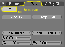 Ir a la pestaña qué sale nueva YafRay y desactivar el botón XML.