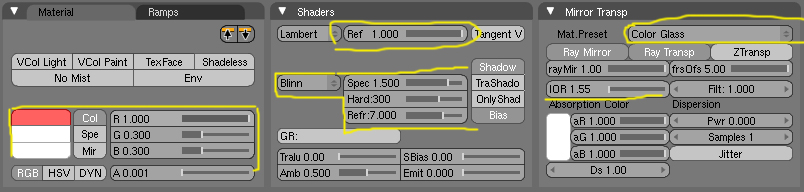Ahora le vamos a poner materiales al objeto (piedra preciosa), para ello se seleccióna; presionamos F5 e introducimos los siguientes valores.