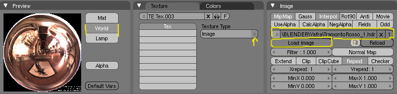 Presionamos Texture buttons (F6) e introducimos una imagen de tipo HDRI.