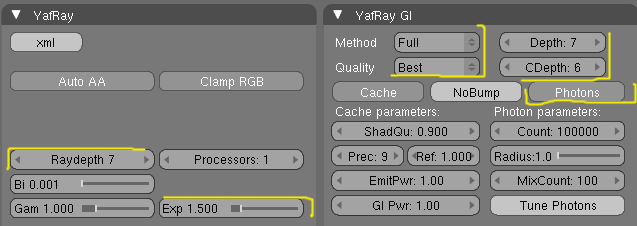 Ahora vamos a YafRay GI con F10 y saldrá una ventana como la qué sigue.