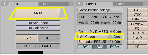 Le ponemos un nombre en la carpeta \tmp (Output) donde se va a guardar el video y presionamos ANIM. (Yo he colocado un AVI Códec de tipo Xvid, pero vosotros podéis utilizar los que os sean habituales).